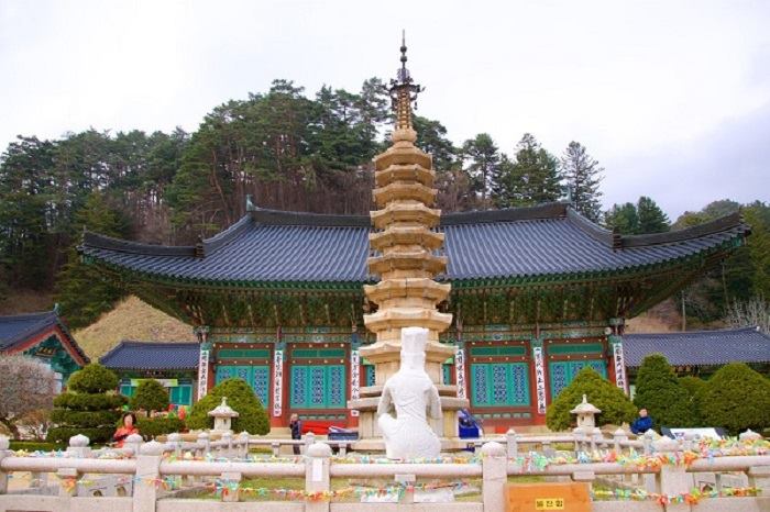 Ngôi đền cũng là nơi có bức tượng Phật 5-Dyani được làm từ 30 tấn đồng thau được đúc trong nhiều thập kỷ để hoàn thành và Chuông Thống Nhất nặng 12 tấn. Những địa điểm thu hút khách du lịch khác có thể kể đến là tượng Phật bằng đồng đang ngồi với hai chân vắt chéo nhau là tượng Phật lớn nhất đất nước, hay tượng Bulgohangsang Thích Ca Mâu Ni duy nhất của quốc gia.
