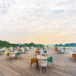 Từ ban công của các phòng nghỉ hay từ đường dạo trên cao, du khách có thể phóng tầm mắt chiêm ngưỡng trọn vẹn vẻ đẹp ngoạn mục của Vịnh Lan Hạ – nơi được mệnh danh là một trong những vịnh biển đẹp nhất thế giới. Cảnh sắc hàng trăm ngàn ngọn núi đá vôi vươn lên từ mặt nước xanh ngọc bích, cùng những khoảnh khắc bình minh hay hoàng hôn rực rỡ lấp lánh trên vịnh chắc chắn sẽ làm say đắm bất kỳ tâm hồn yêu cái đẹp nào.